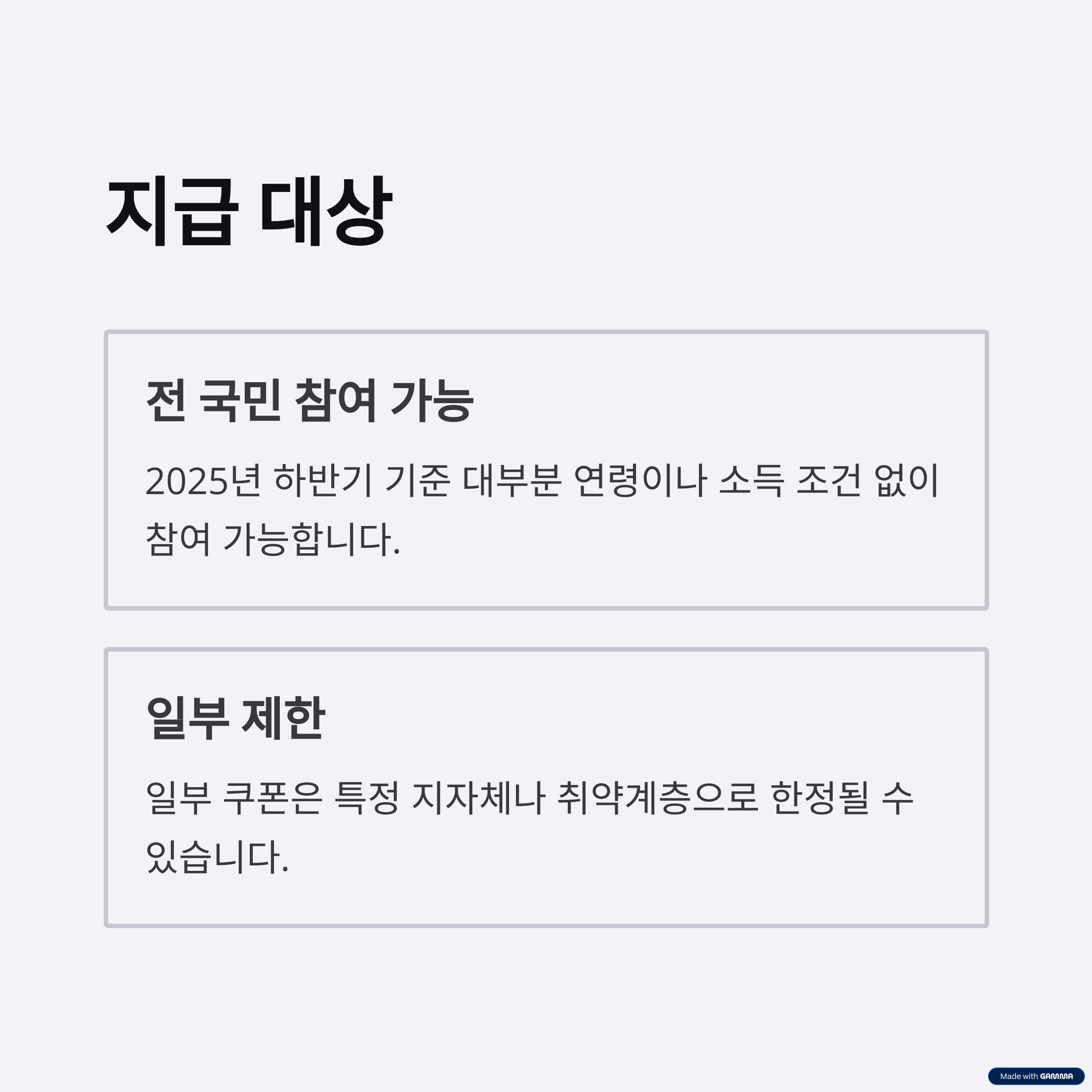 전 국민이 참여 가능한 구조로 설계되었습니다. 다만 일부 쿠폰은 특정