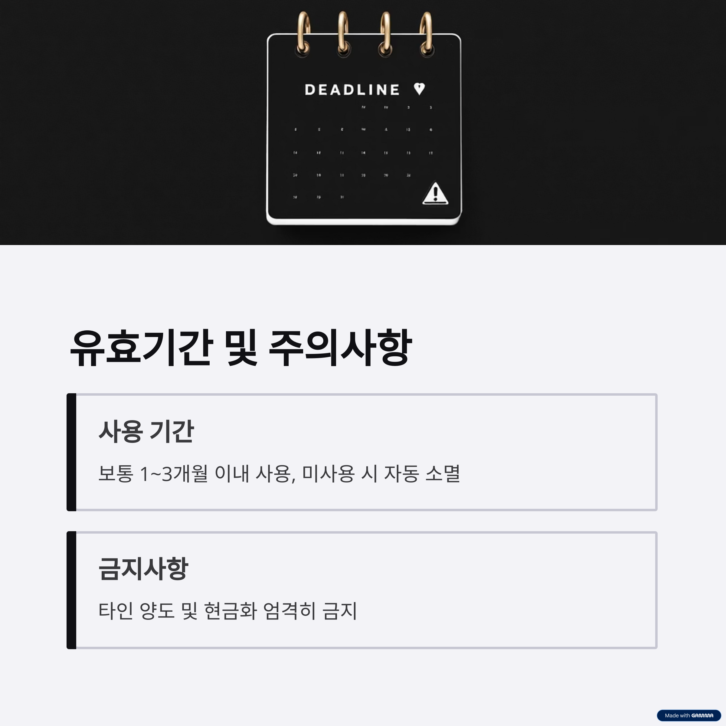현금화하는 것은 엄격히 금지되어 있습니다. 따라서 반드시 기간 내에
