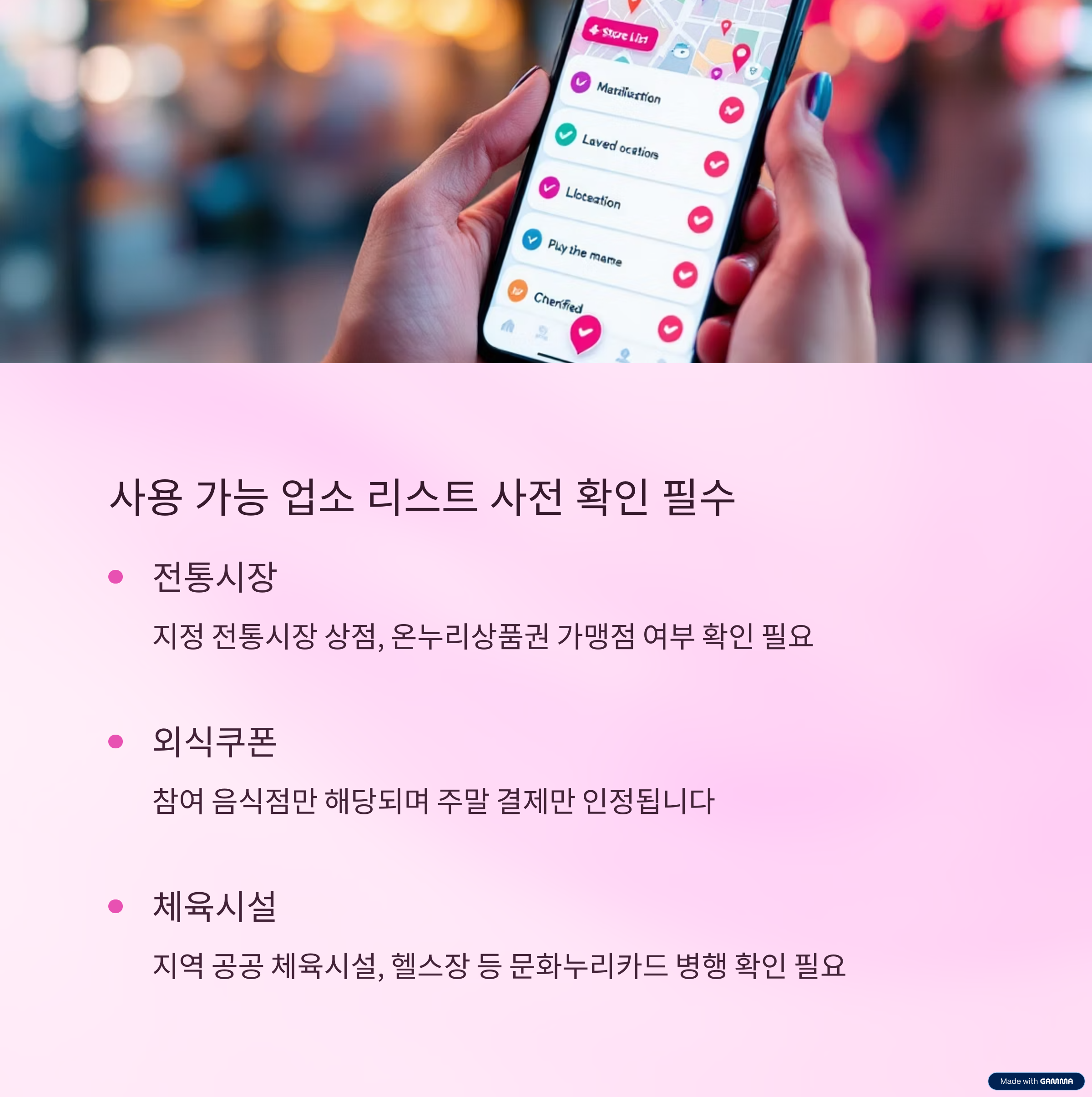 3. 사용 가능 업소 리스트 사전 확인 필수