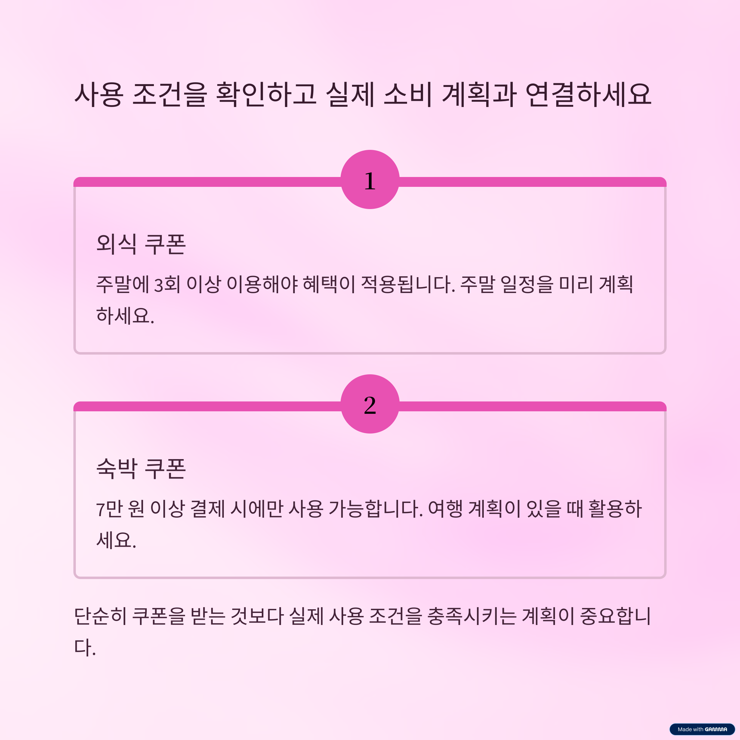 2. 사용 조건을 확인하고 실제 소비 계획과 연결하세요